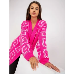 Fluo růžový vzorovaný rozepínací svetr značky RUE PARIS .