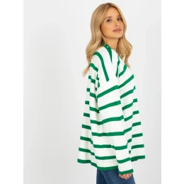 Tmavě zelený a ecru pruhovaný vlněný svetr oversize od RUE PARIS .