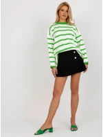 Zelený a ecru pruhovaný vlněný svetr oversize od RUE PARIS .