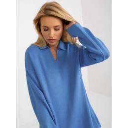 Modrý dlouhý oversize svetr s límečkem RUE PARIS .