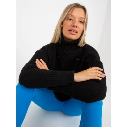 Černý projmutý svetr s rolákem a oversize střihem značky RUE PARIS .