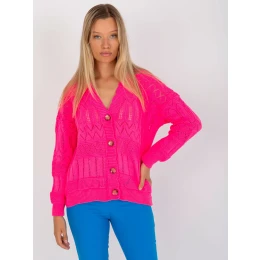 Fluo růžový letní svetr bez knoflíků s prolamovaným vzorem od RUE PARIS .