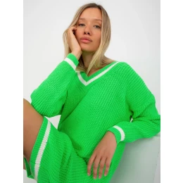 Fluo zelené mini pletené šaty s výstřihem do V RUE PARIS .