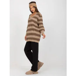 Hnědo-béžový delší pruhovaný svetr nadměrné velikosti od značky RUE PARIS .