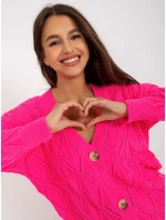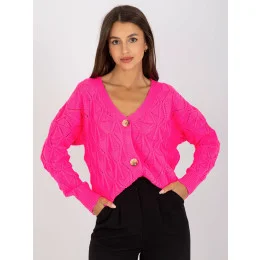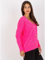 Fluo růžový prolamovaný svetr na knoflíky od značky RUE PARIS .