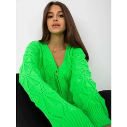 Fluo zelený rozepínací svetr s ažurovým vzorem od RUE PARIS .