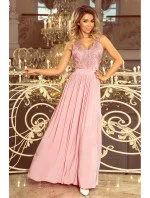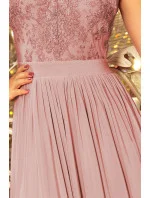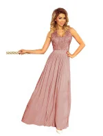 LEA - Dlouhé dámské šaty v barvě taupe bez rukávů, s vyšívaným výstřihem 215-5