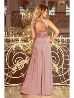 Tyto šaty značky Numoco krásně zvýrazňují a odhalují výstřih a záda. Model je polským výrobkem. Šaty se zapínají vzadu knoflíčkem a skrytým zipem. Vzor výšivky se může lišit v závislosti na dodaném materiálu.