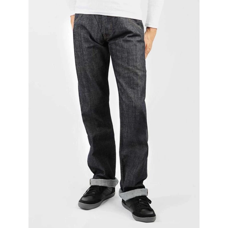 Pánské džínové kalhoty s rozšířenými nohavicemi a nízkým sedem, zapínání na knoflíky, kožená a kožešinová nášivka s logem výrobce na zadní straně.