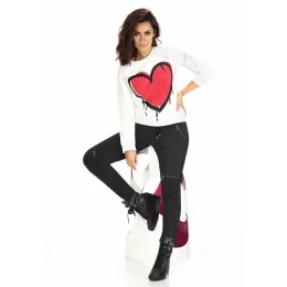 Legíny, které jsou vyrobené z pružné látky, z materiálu Plyš-Velvet. Legíny jsou kryjící a tvarují postavu. Ve vnitřní straně modelu je jemný kožíšek. V pase je pohodlná guma s popruhy. Na úrovni boků a na stehnech jsou zipy imitující kapsičky. Kolena zdobí ozdobná prošití. Nohavice lemují stahovací lemy.
