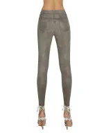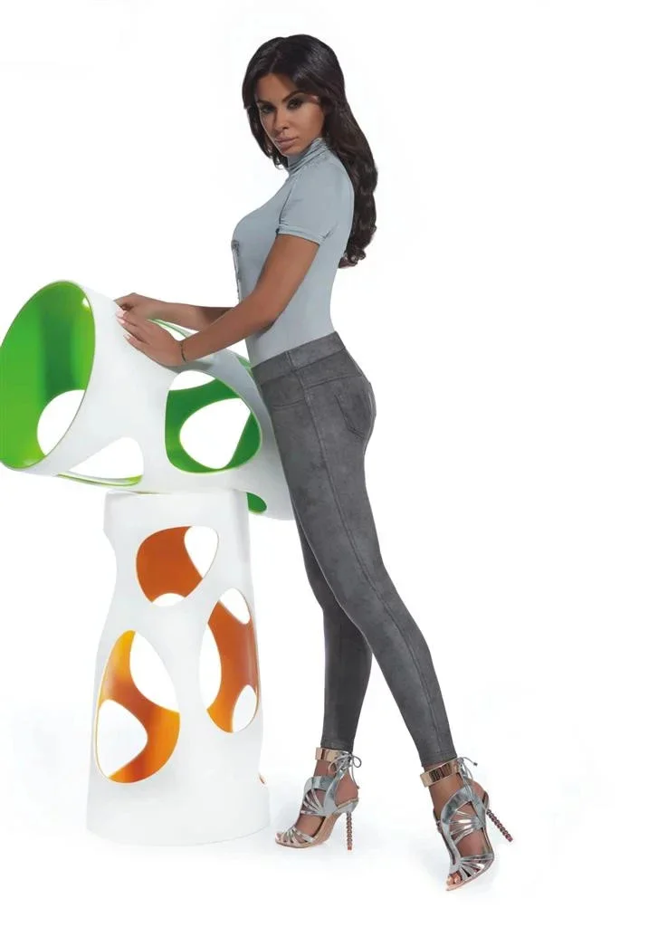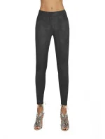 Sametový materiál pro měkký pocit je zcela neprůhledný, flexibilní, formuje postavu, vnitřní strana je dále upravena tak, aby se dosáhlo jemných chloupků, které zvyšují tepelné vlastnosti. Atraktivnost těchto legín zvyšuje džínový střih i široká guma v pase.