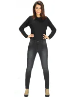 Dámské džíny. Materiál JEANS ručně stíraný a strojově řízený je plně krycí, flexibilní, modelující siluetu. Materiál JEANS je vyroben z renomovaných výrobců příze s mezinárodní certifikací Oeko-Tex.