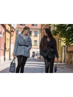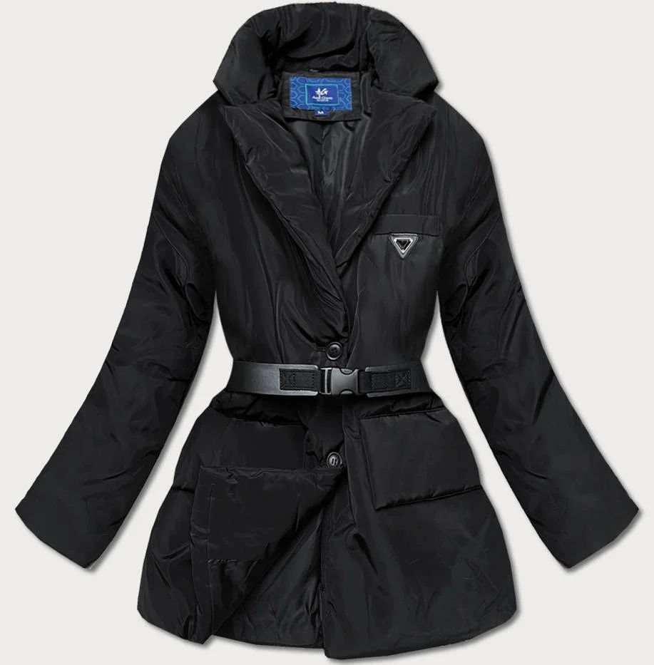 Bunda má dvě kapsy, pásek a zapíná se knoflíky.