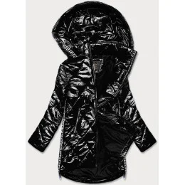 Lehká černá lesklá dámská bunda s lemovkami (LD7258BIG)