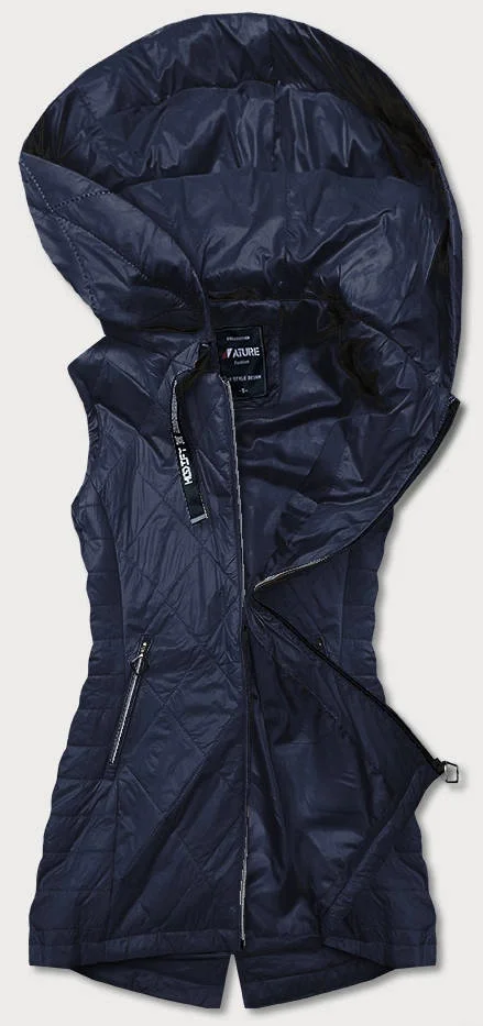 Lehká tmavě modrá dámská vesta s kapucí (RQW-7006)