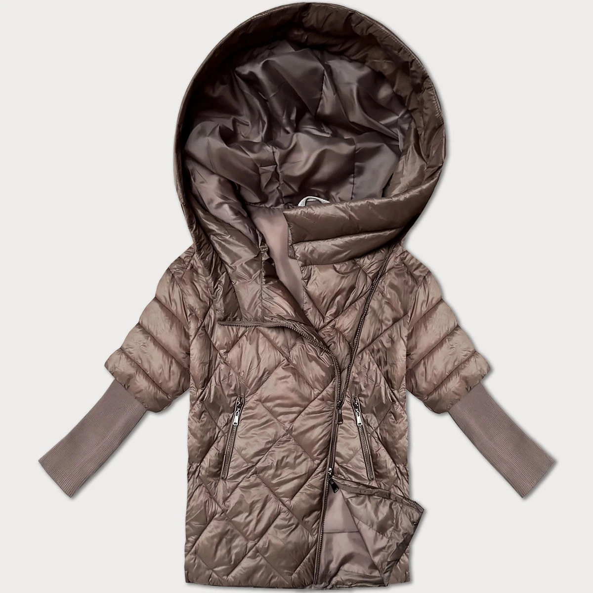 Lehká hnědá dámská bunda s úpletovými rukávy Minority (M2-6701-305)