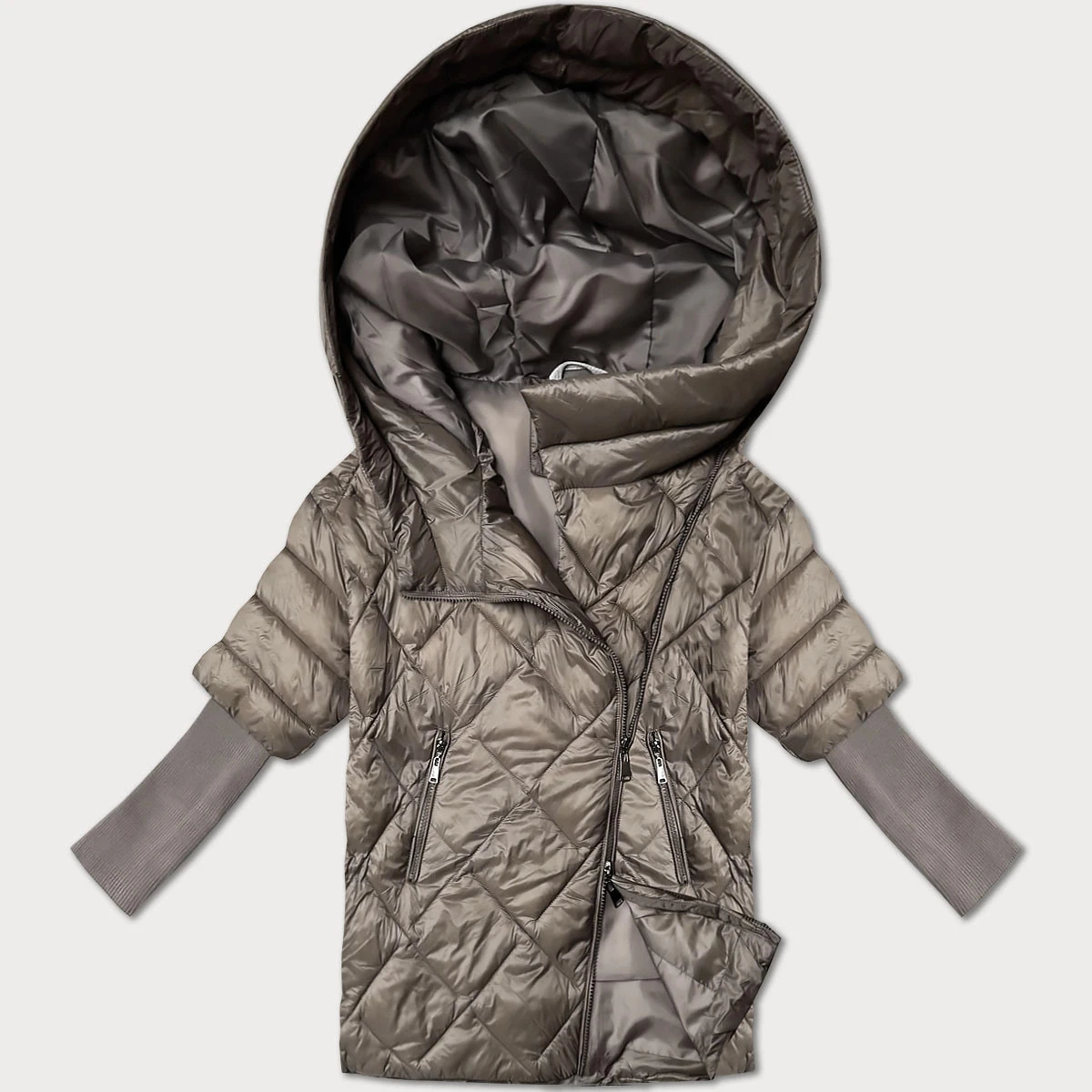 Tmavě béžová lehká dámská bunda s úpletovými rukávy Minority (M2-6701-62)