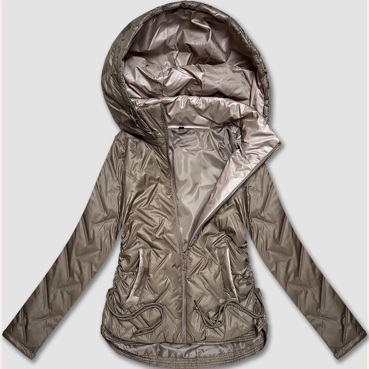Béžová lehká dámská plus size bunda s kapucí S'West (B8558-12)