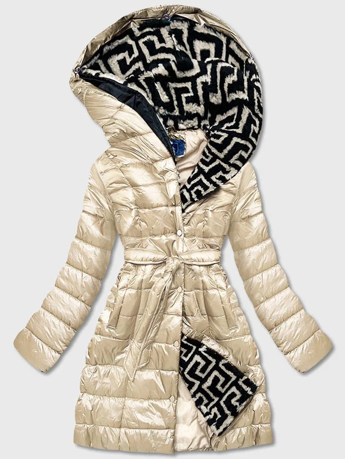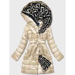 Lehká dámská zimní bunda v barvě ecru se zateplenou kapucí (omdl-019)