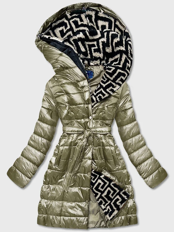 Lehká dámská zimní bunda v khaki barvě se zateplenou kapucí (omdl-019)