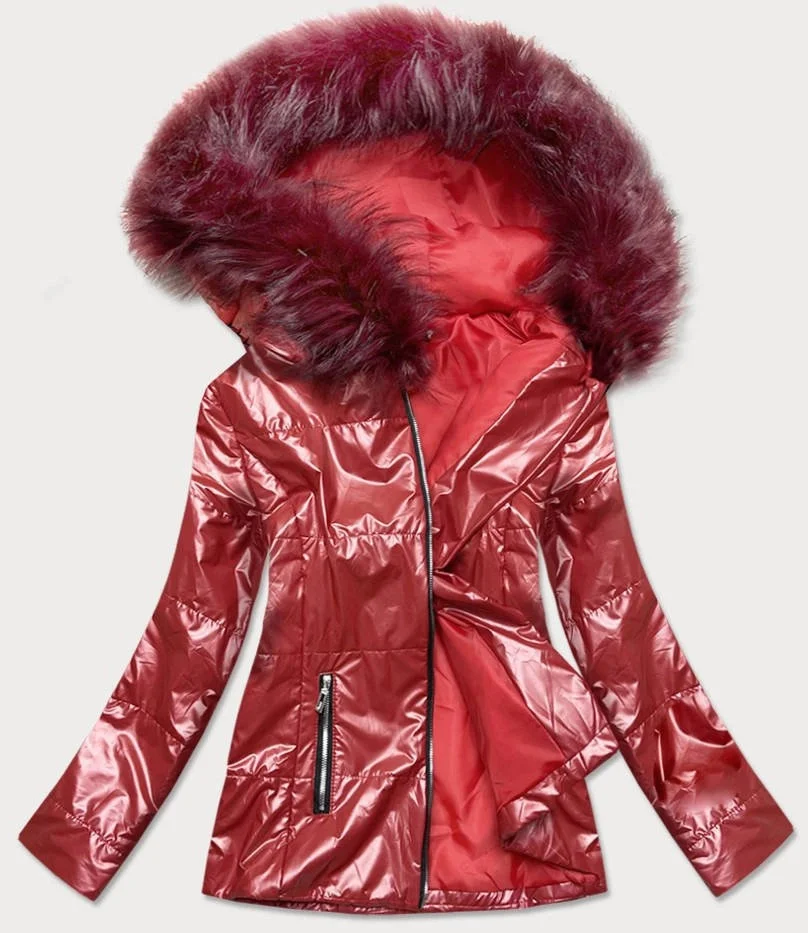 Lehká dámská zimní metalická buda ve vínové bordó barvě (721art)