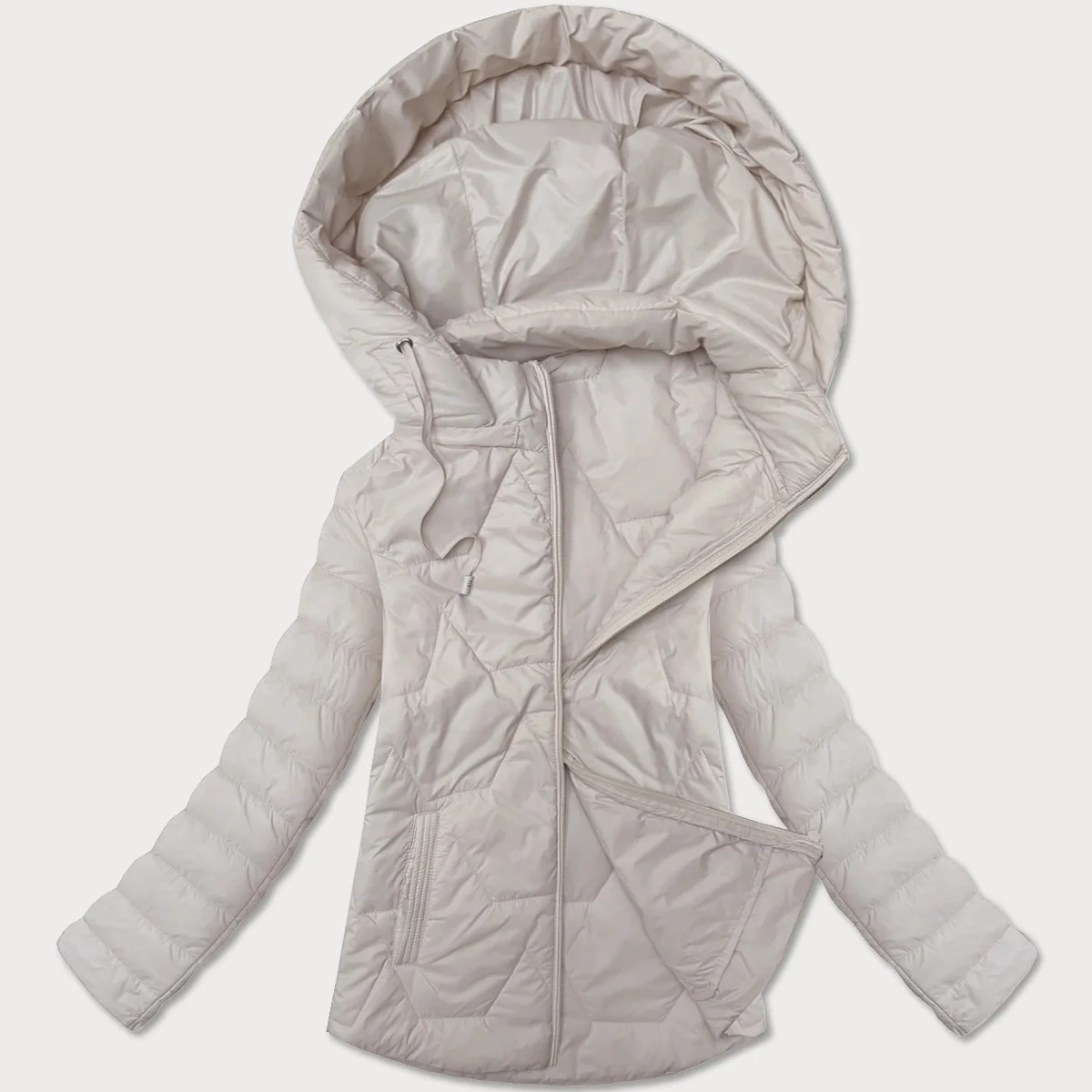 Lehce zateplená béžová dámská bunda se stojáčkem a kapucí J Style (16M9229-62)