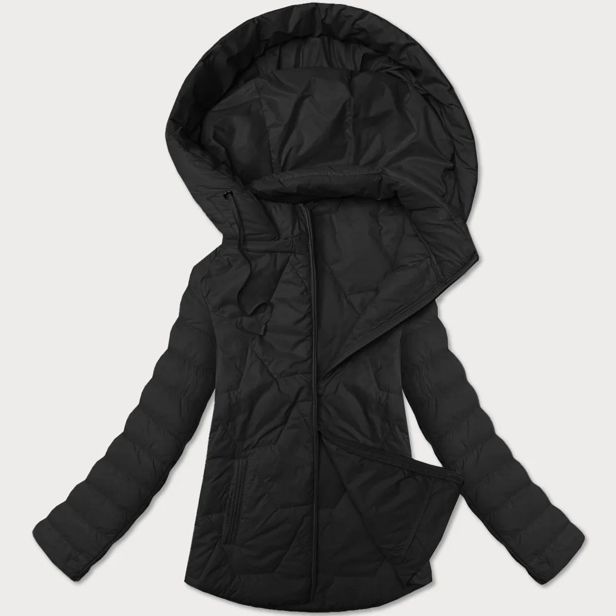 Lehce zateplená černá dámská bunda se stojáčkem a kapucí J Style (16M9229-392)