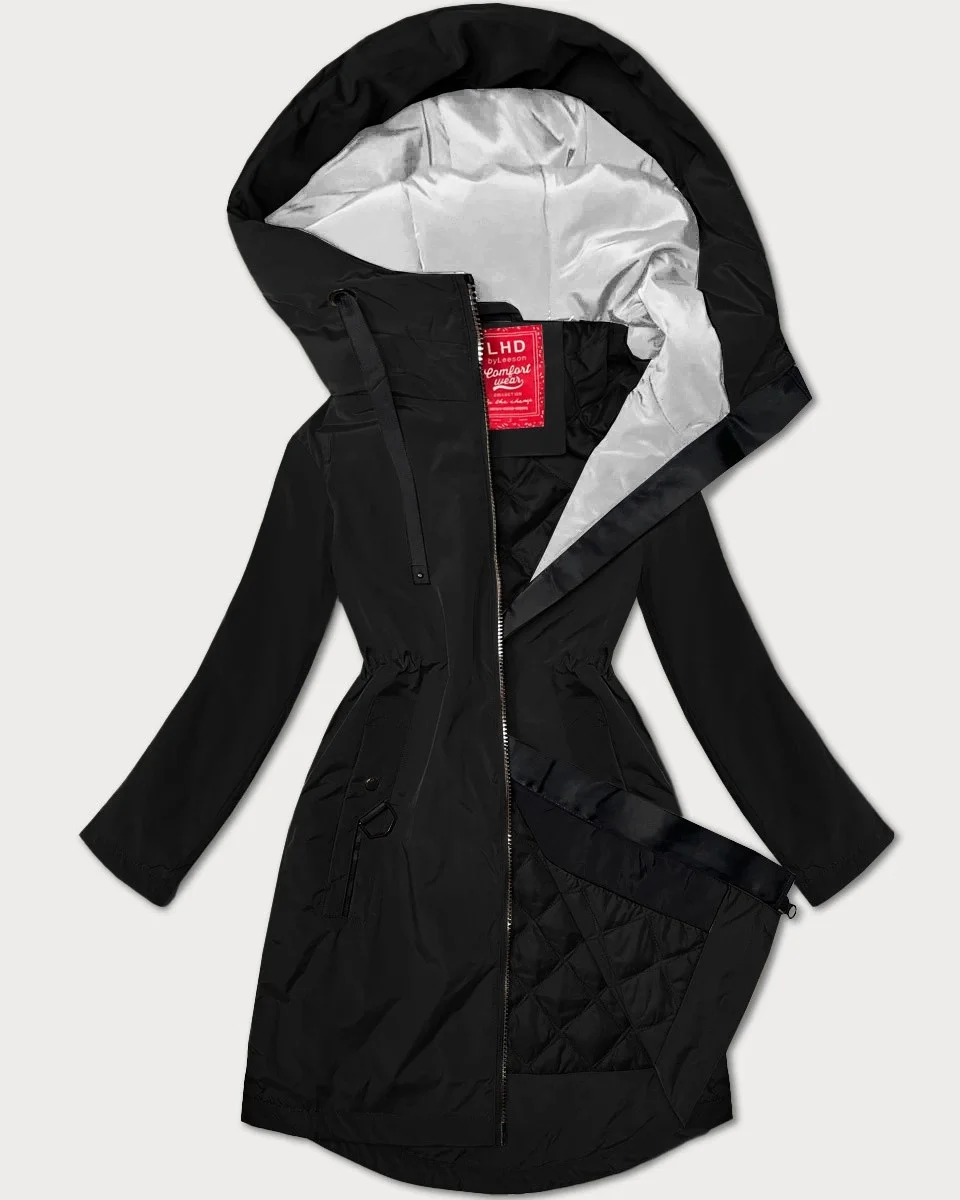 Lehce zateplená černá dámská bunda s kapucí LHD (LHD-24589)