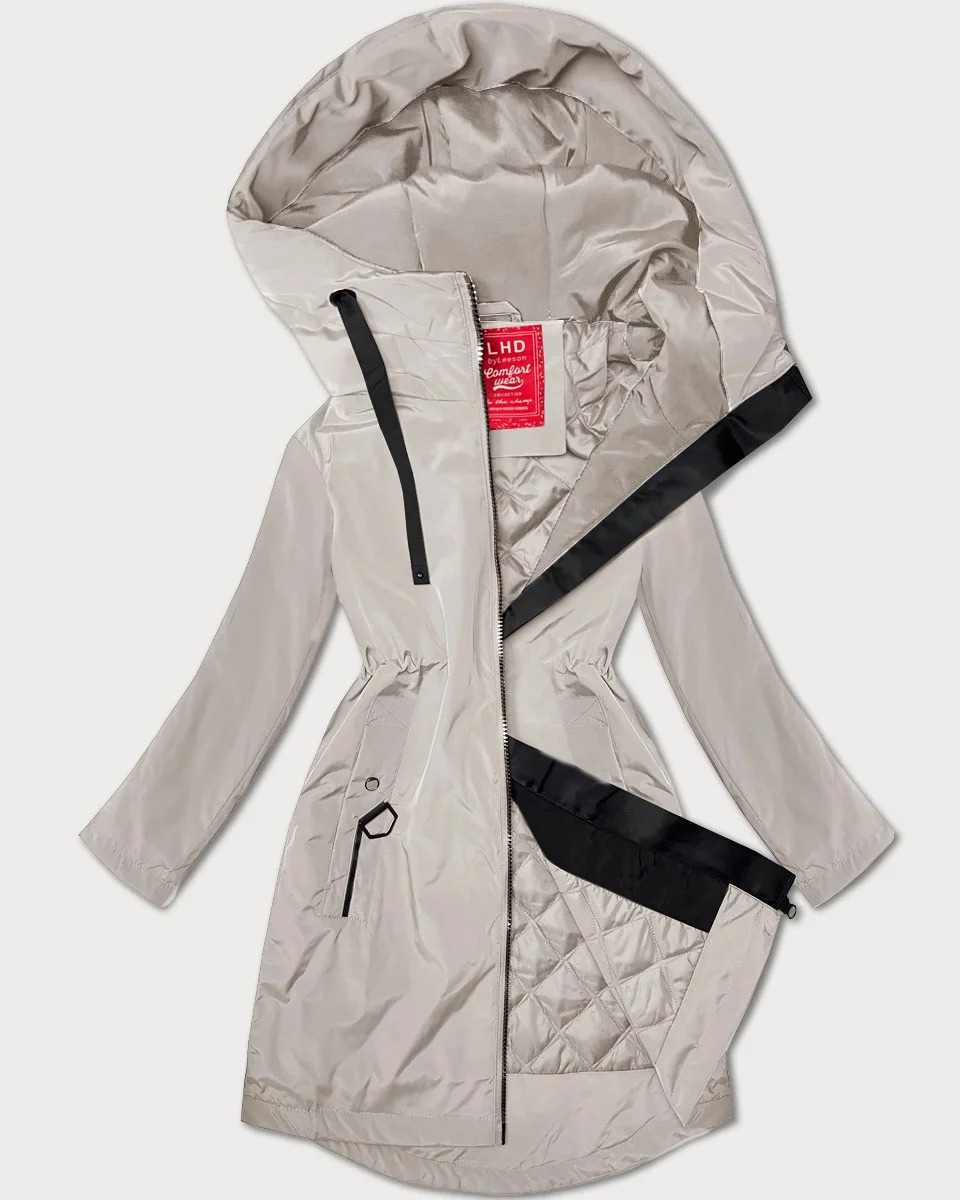 Lehce zateplená světle béžová dámská bunda s kapucí LHD (LHD-24589)