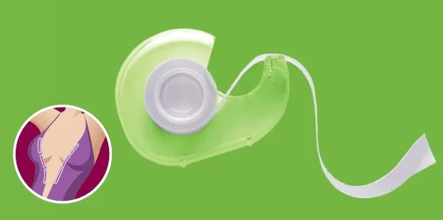Oboustranná lepící páska na komfortní košilky a šaty s hlubokým výstřihem. Jednou částí se lepí na tělo,druhou stranou na vnitřní stranu oděvu. Slouží k tomu, aby výstřih držel tvar a nebylo vidět to, co dáma nechce, aby vidět bylo. Páska je neviditelná pro oko a bezpečná pro pokožku, protože je vyrobená ze 100% hypoalergenního materiálu. Rolka obsahuje 3 metry pásky šíře 20 mm.Před praním je třeba pásku ze šatů odstranit.