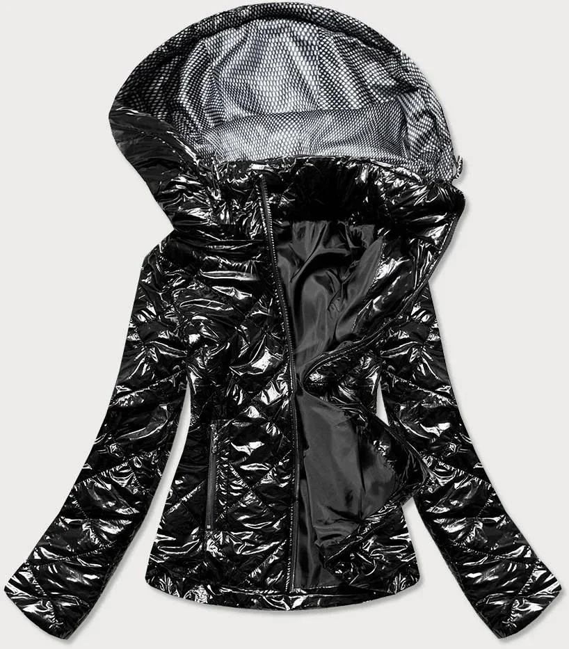 Lesklá černá dámská bunda (BR9756-1)