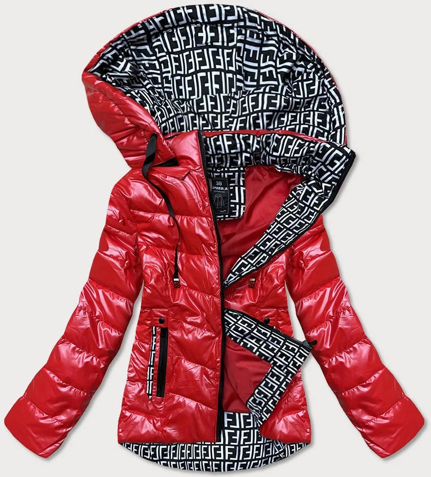 Lesklá červená bunda se vzorovanými vsadkami (W718)