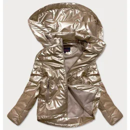 Lesklá dámská oversize bunda v barvě kapučíno (2021-06)