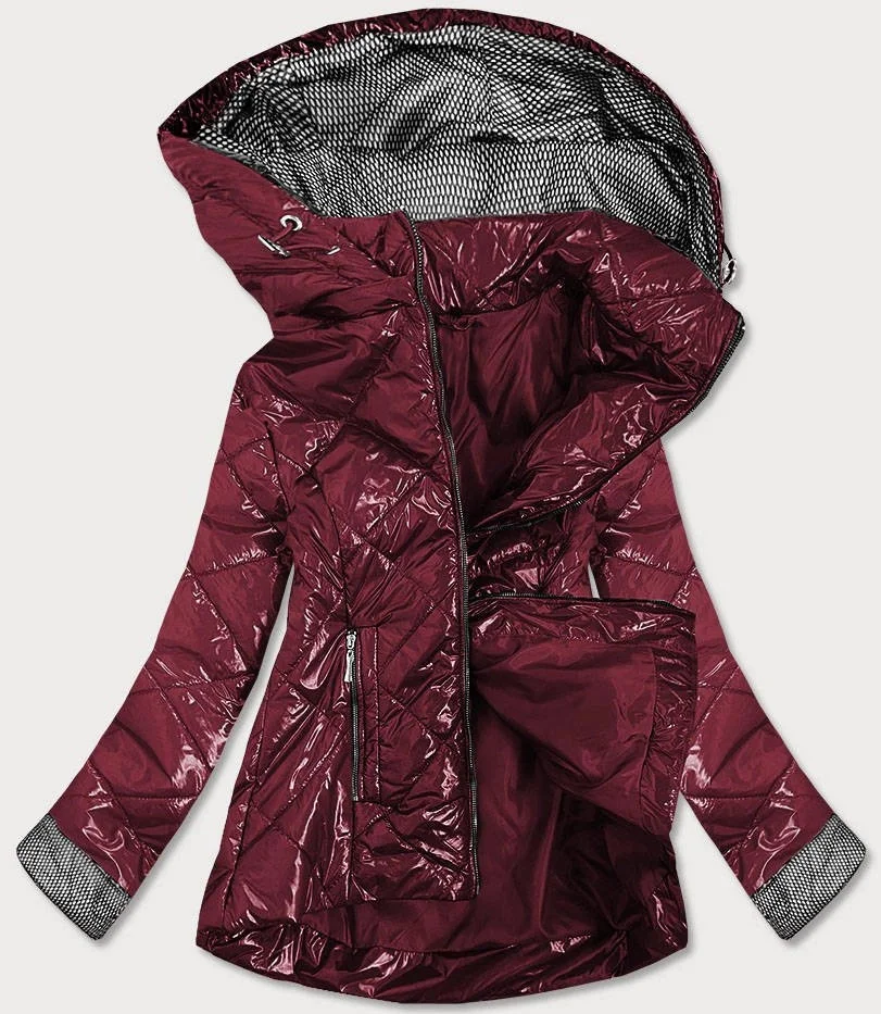 Lesklá prošívaná dámská bunda v bordó barvě (B9573)