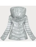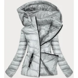 Lesklá stříbrná dámská bunda s kapucí (B9569)