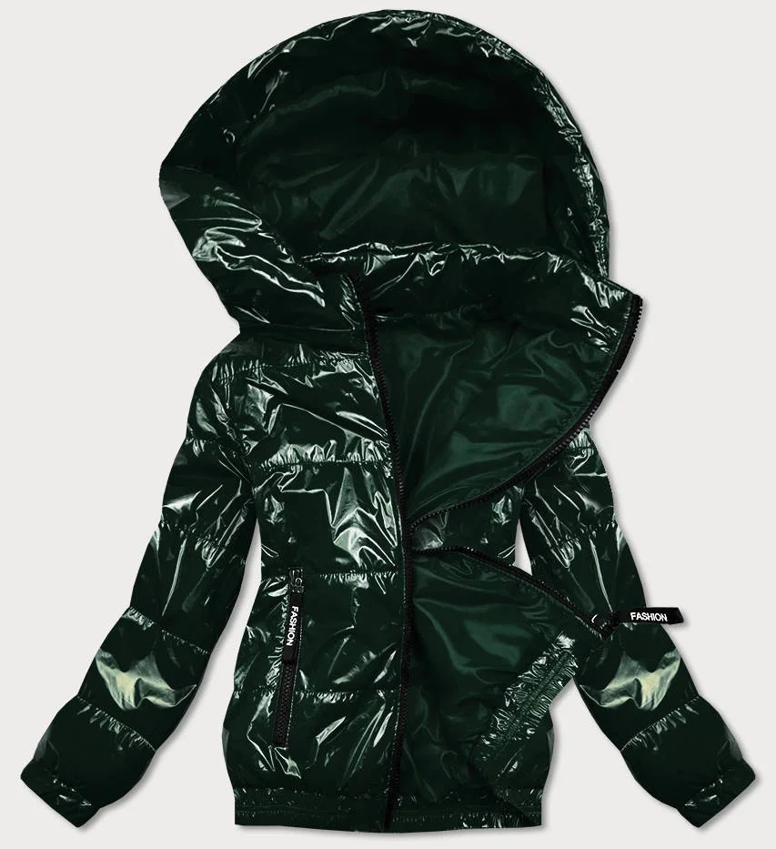 Lesklá zelená prošívaná bunda s kapucí (BR9788-10)