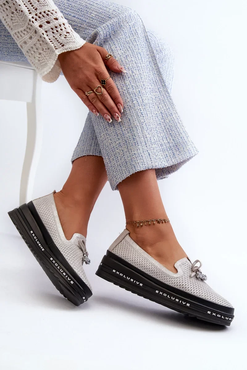Lesklé dámské kožené mokasíny na platformě S.Barski Silver