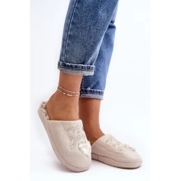 Błyszczące kapcie damskie ozdobione napisem i sercem. Model wsuwany z zakrytym noskiem. Osadzone na grubej podeszwie. Wkładka ocieplona futerkiem. Při výběru velikosti se řiďte tabulkou velikostí.