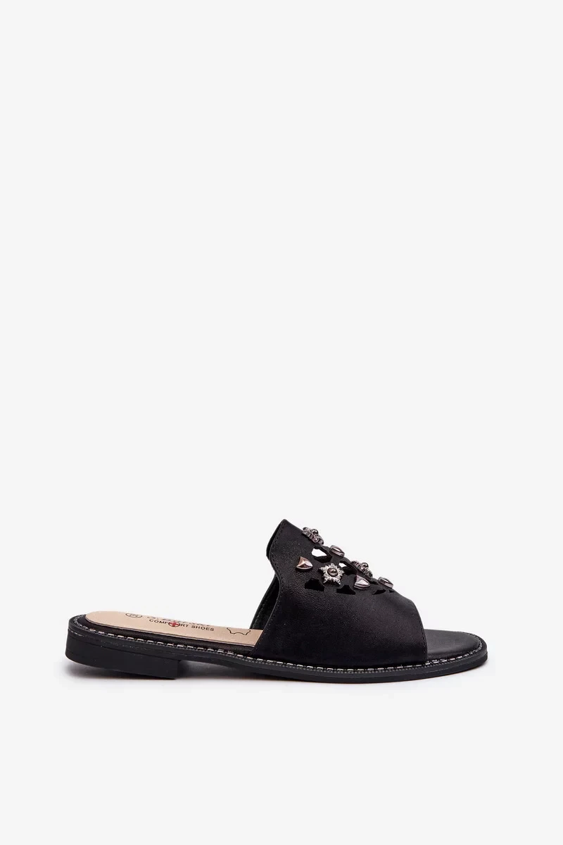 Lesklé dámské sandály s ozdobami S.Barski Černá