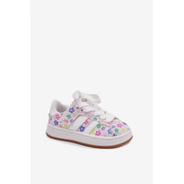 Lesklé Dívčí Sportovní Boty S Květinami Bílé Tessina