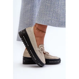 Dámské prolamované mokasíny S.Barski. Vyrobeno z přírodní kůže. Namontované na platformě. Zaoblené prsty. Dekorace na přední straně. Měkká stélka zajišťuje pohodlí při používání. Tyto mokasíny jsou perfektní jako stylový doplněk k mnoha různým stylům! Při výběru velikosti se řiďte tabulkou velikostí.