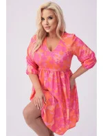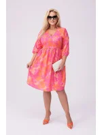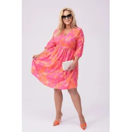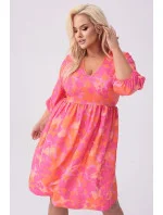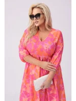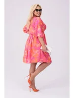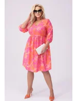 Růžovo-oranžové dámské letní květované šaty (8276)