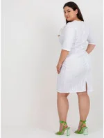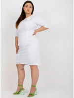 Bílé elegantní plus size šaty s 3/4 rukávy .