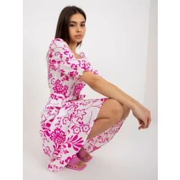 Bílé a fuchsiové šaty s rozšířeným potiskem .