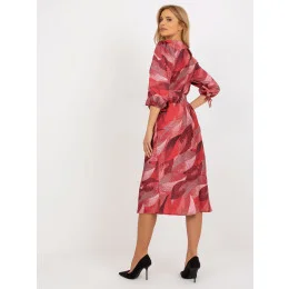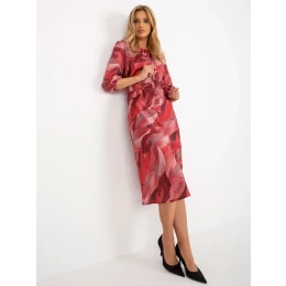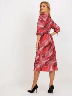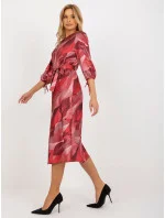 Bordó koktejlové šaty s potisky a 3/4 rukávy .