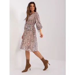 Tmavě béžové volné šaty s květinovým vzorem.
