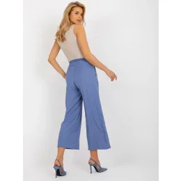 Tmavě modré látkové kalhoty culotte se zavazováním .