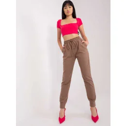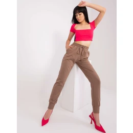 Hnědé tepláky s vysokým pasem .
