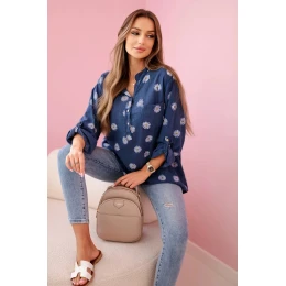 Lněná dámská halenka s květinovým vzorem, dlouhými rukávy a knoflíky Džínová