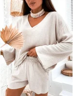 Béžový lněný dámský komplet - oversize halenka a šortky (752)